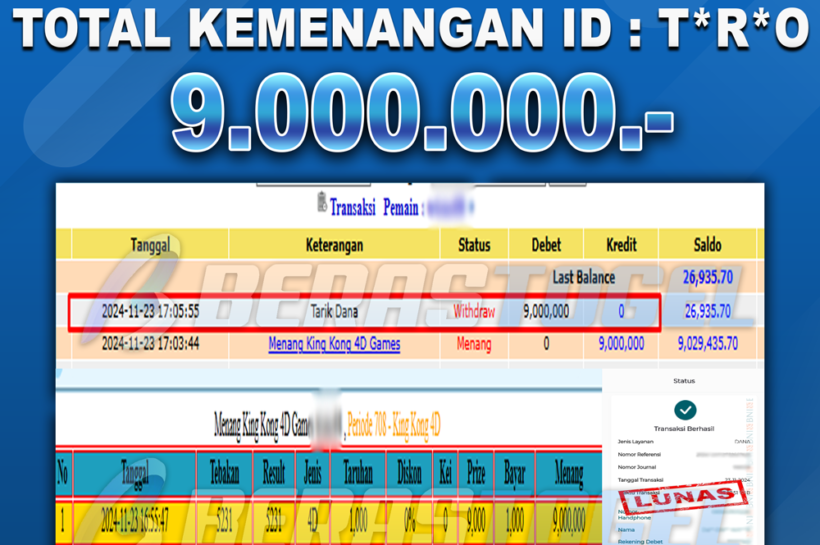 MEGA WIN TOGEL BERASTOGEL : TOTOMACAU4D . Kami ucapkan selamat atas kemenangan member Berastogel dengan ID : Aj**2 dipasaran TOTOMACAU4D sebesar Rp9.000.000 juta. Terima kasih sudah mempercayakan kami sebagai BO togel…