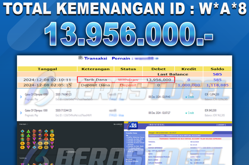 PUAS BANGET OLYMPUS BERASTOGEL – Kami ucapkan selamat atas kemenangan member Berastogel dengan ID : hok*** digame GATES OF OLYMPUS 1000 sebesar Rp 11.000.000. Terima kasih sudah mempercayakan kami sebagai BO slot…